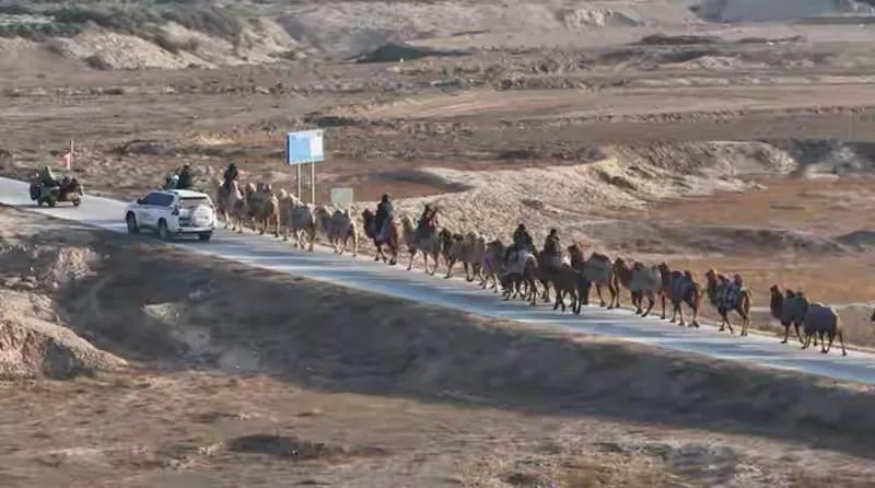 旅途遠比想象中艱辛。為避開白日酷暑,隊員們常選擇夜行,卻在深夜遭遇12級大風。“風沙打在臉上生疼,但沒人停下腳步,一步步挪到宿營地。”蔣曉亮在社交平臺分享的經歷,讓10多萬粉絲動容。當駝隊途經甘肅張掖時,市民紛紛駐足圍觀,揮手高喊“辛苦了”,成為路途上的溫暖慰藉。