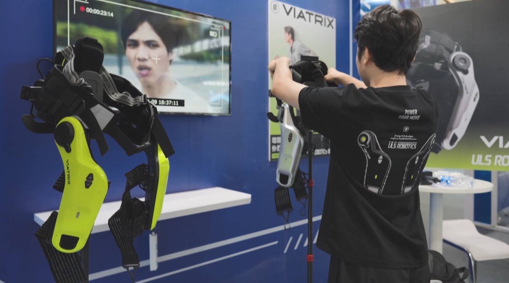 在這家來自上海的科技公司展位,穿上這套增程動(dòng)力外骨骼機(jī)器人,普通人也能有效減輕負(fù)重,讓登山、騎行和長(zhǎng)時(shí)間步行變得格外輕松。